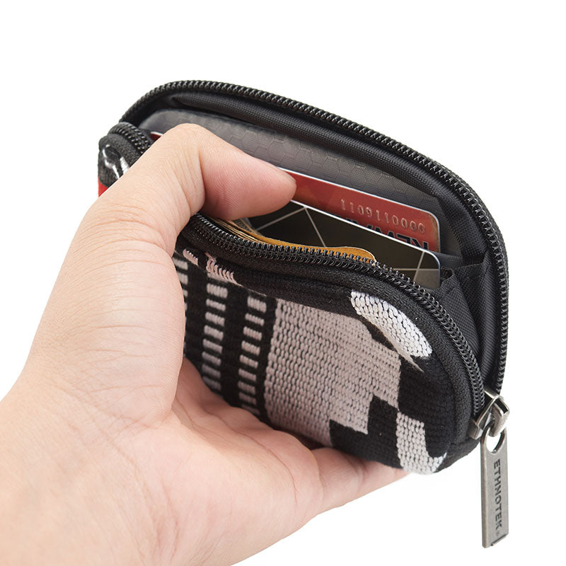 エスノテック コヨパポーチは、RFIDブロッキングセキュリティシステムを備えた賢くて多機能な小さなジッパーポーチです。多くのコイン、現金、鍵、カード、その他の貴重品を持ち歩くことが出来て、通勤時等の使用にも適しています。