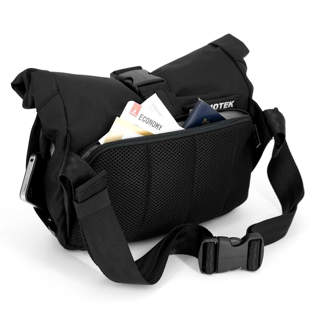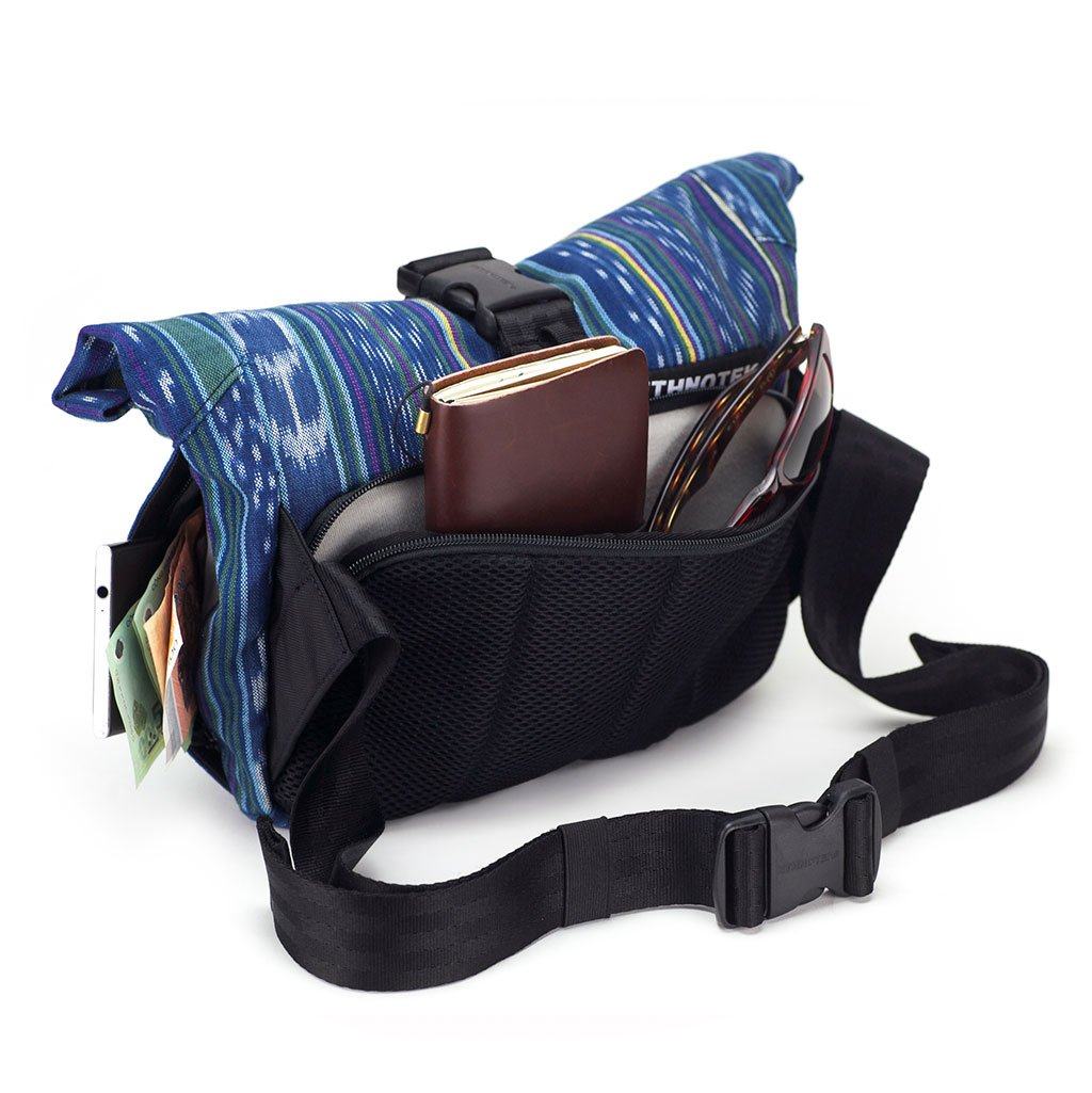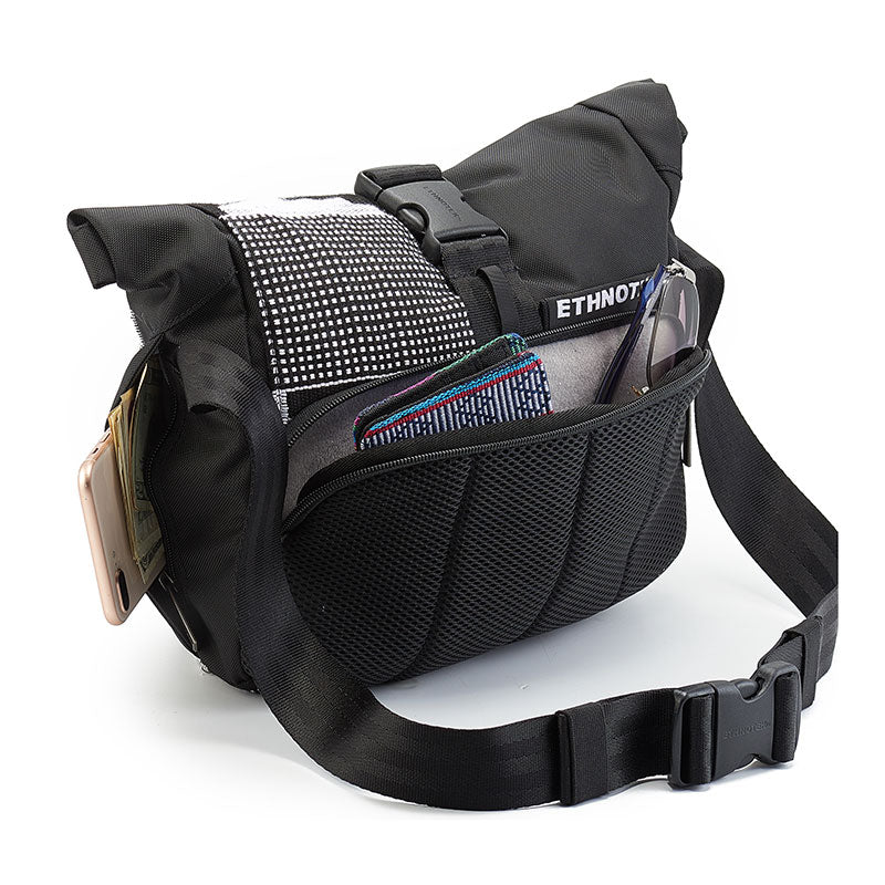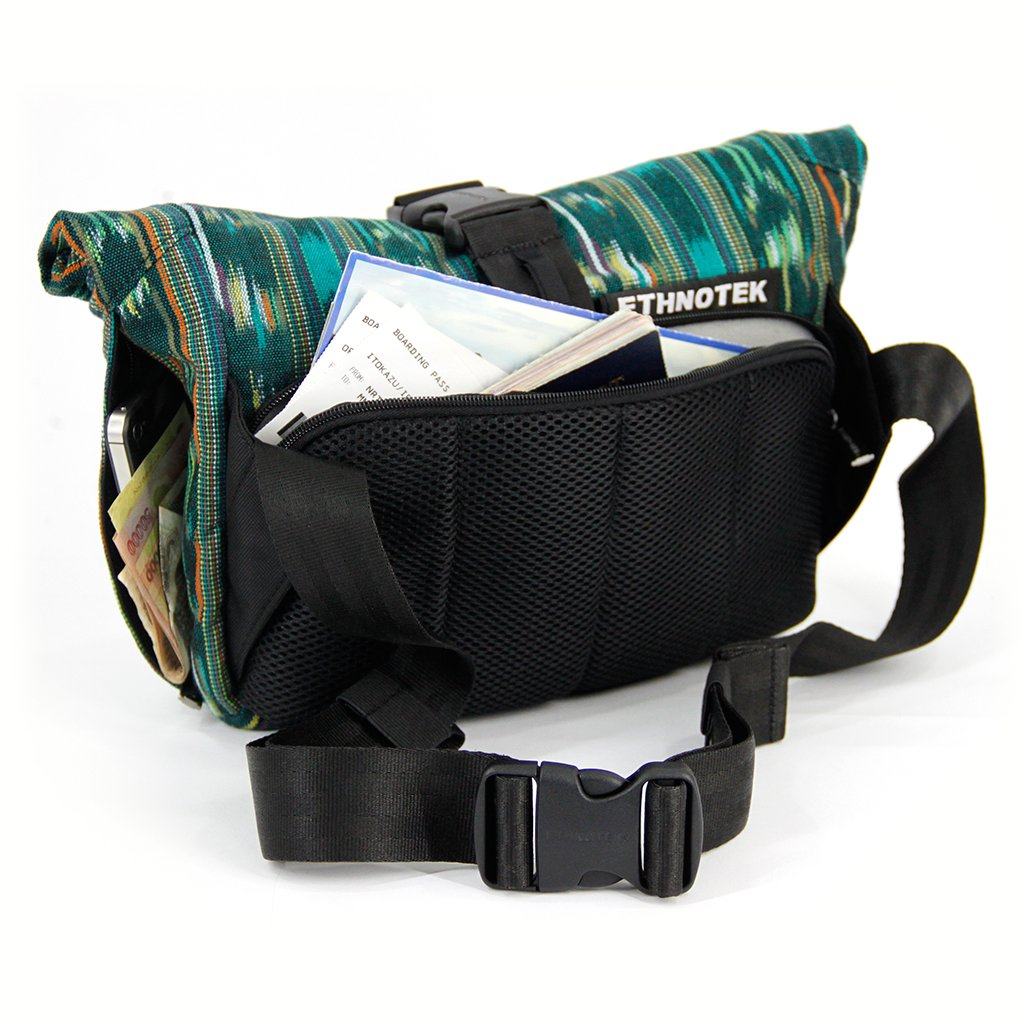 エスノテック シクロトラベルスリングのデザインは、クラシックなクロスショルダーバッグにロールトップクロージャーの革新的な新しいアプローチを提供します。海外を飛び回る方や通勤時の使用まで様々なシーンで活躍し、迅速なアクセスを求めるミニマリストにも適しています。背面のジコンパートメントにはパスポート、飛行機のチケット、タブレットなどが収納でき、ロールトップのメインコンパートメントには長袖シャツ、本、ヘッドフォン等沢山収納できます。