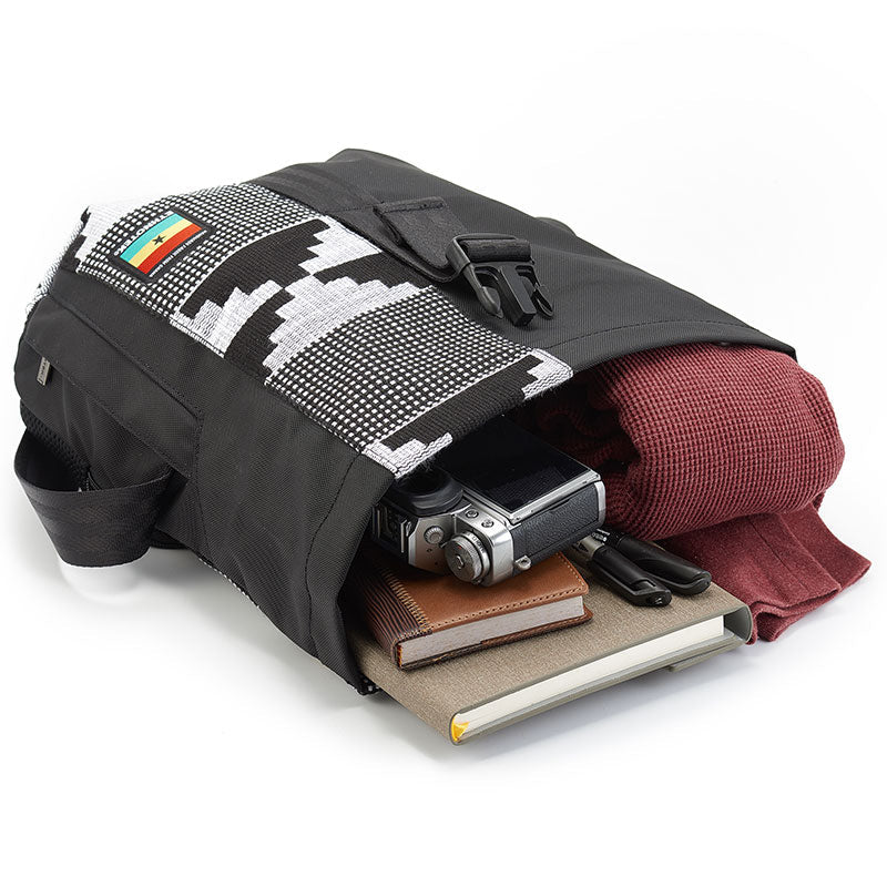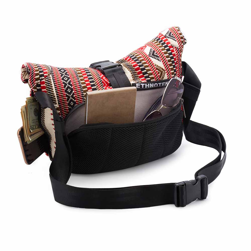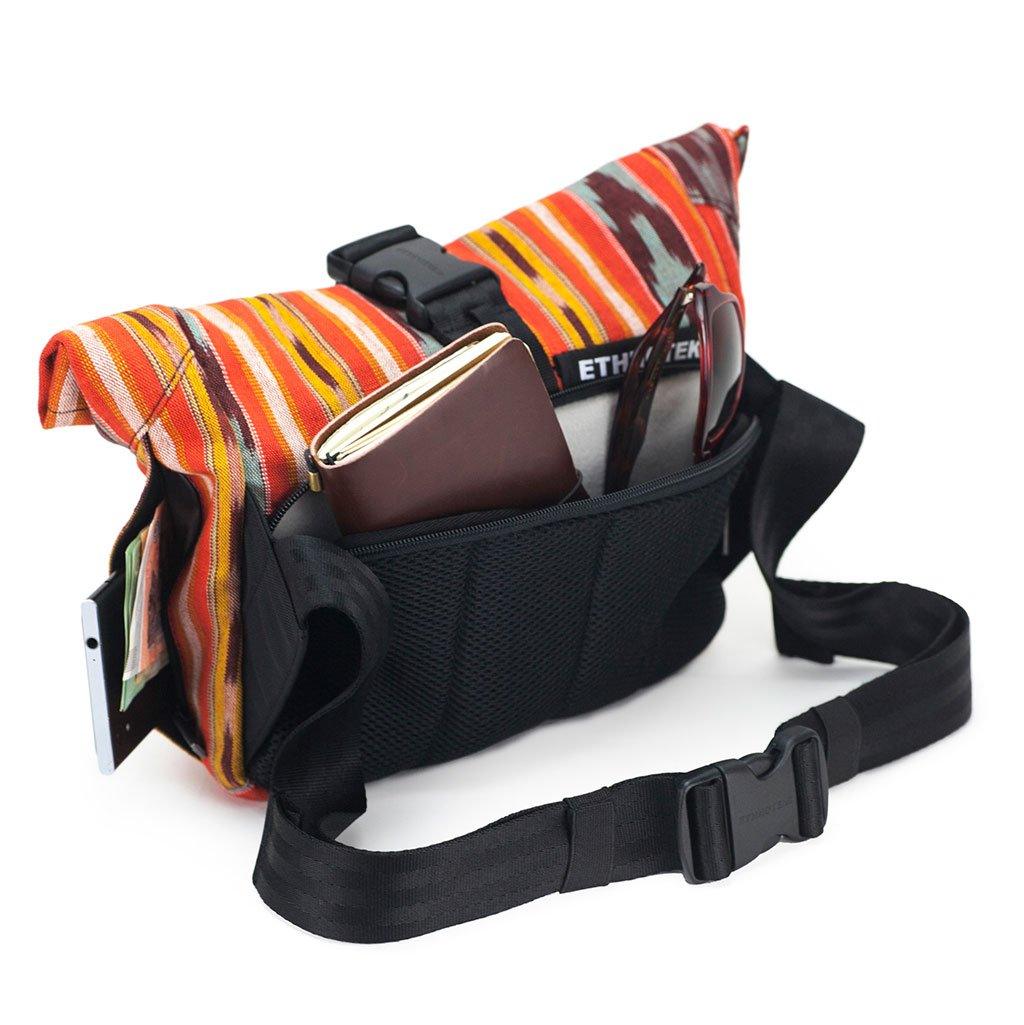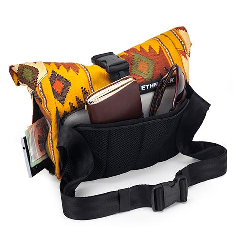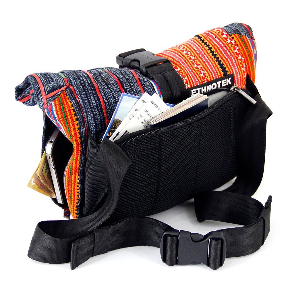 エスノテック シクロトラベルスリングのデザインは、クラシックなクロスショルダーバッグにロールトップクロージャーの革新的な新しいアプローチを提供します。海外を飛び回る方や通勤時の使用まで様々なシーンで活躍し、迅速なアクセスを求めるミニマリストにも適しています。背面のジコンパートメントにはパスポート、飛行機のチケット、タブレットなどが収納でき、ロールトップのメインコンパートメントには長袖シャツ、本、ヘッドフォン等沢山収納できます。