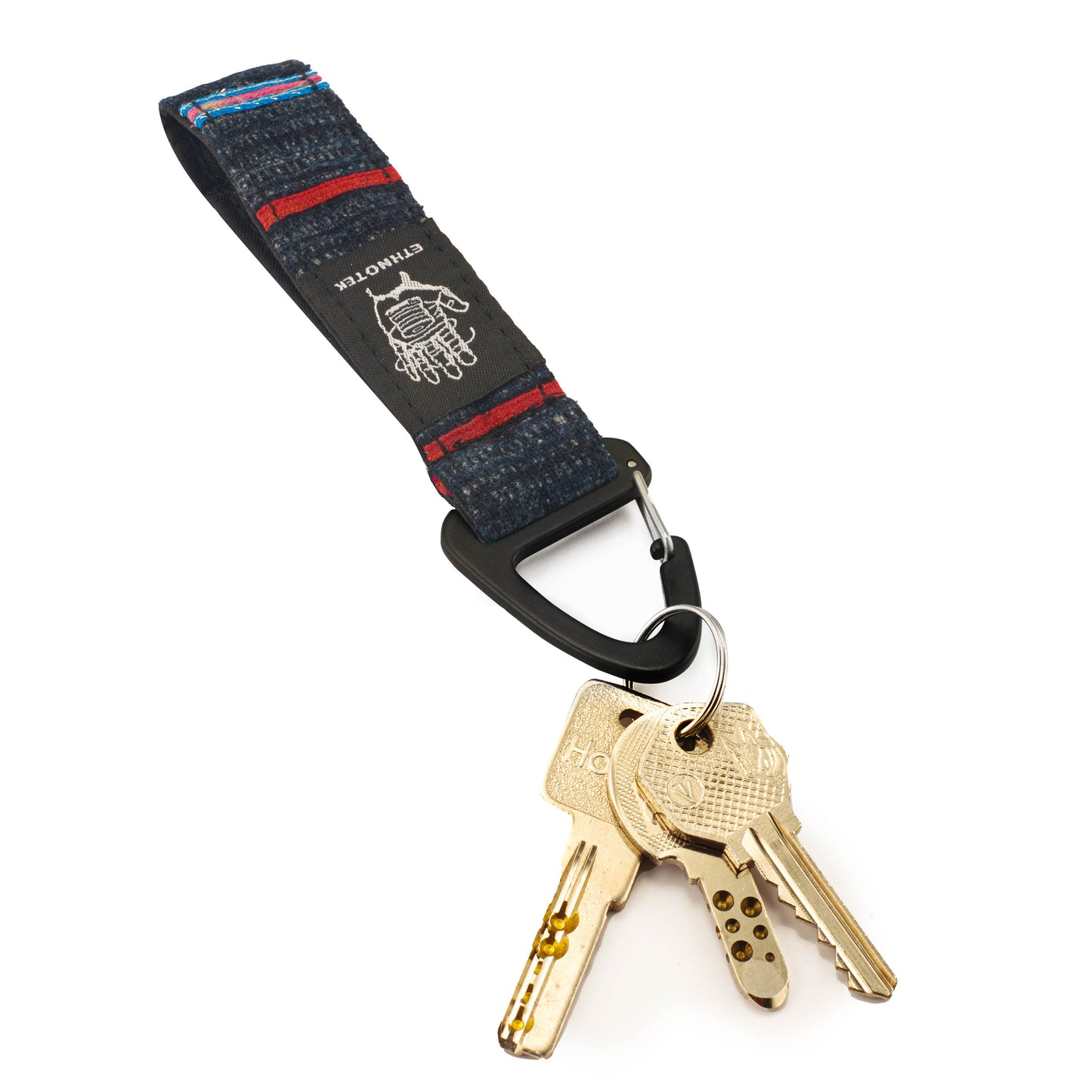 エスノテック クリップ キーチェーンの特徴の一つは、その頑丈な構造です。伝統工芸職人の手で作りあげられた生地とアノダイズド加工された軽量アルミ製カラビナで、このキーチェーンは日常のハードな使用に耐えるように作られています。頑丈なカラビナのデザインは、キーがしっかりと固定され、偶発的な紛失や置き忘れが無いようにデザインされています。カラビナのクイックリリース機能により、必要なときにキーに簡単にアクセスできます。