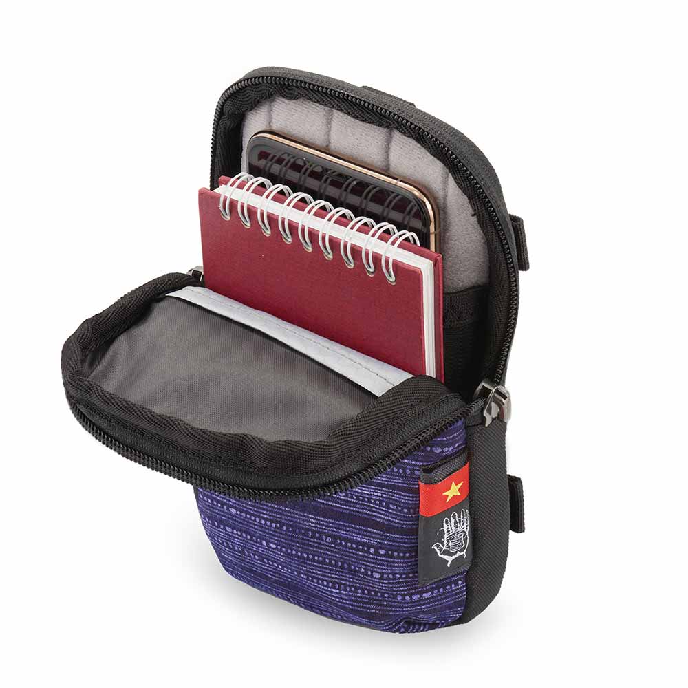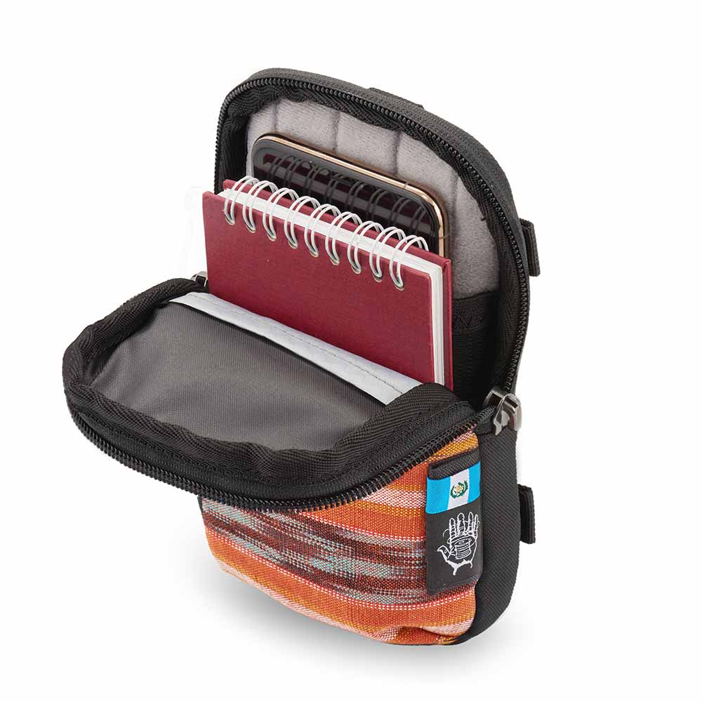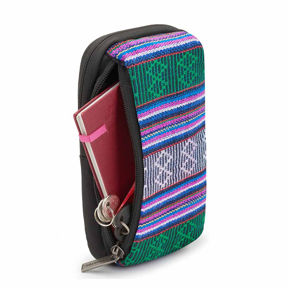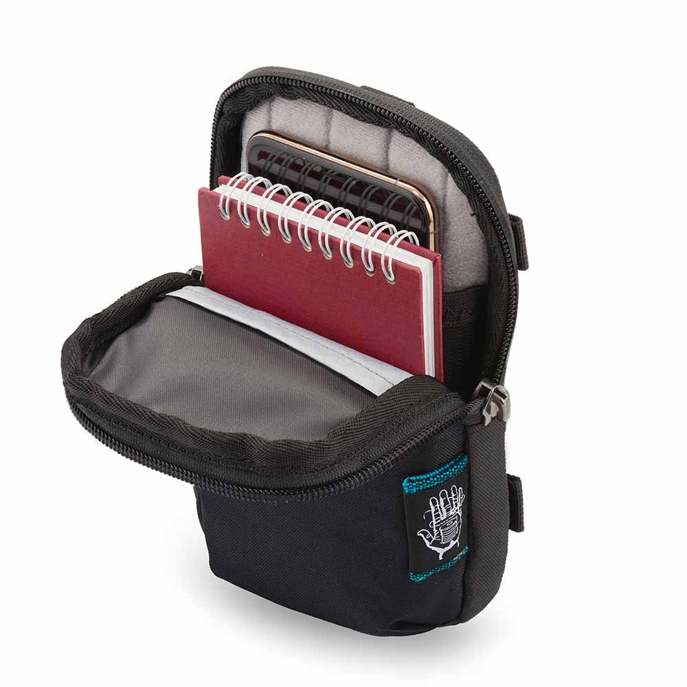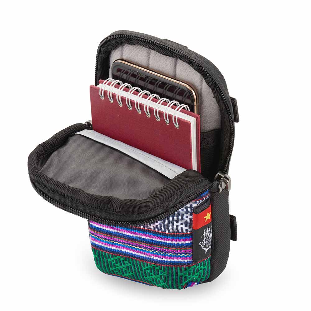 エスノテック ピンダーフォンポーチは、バックパッカーや通勤時の使用にとっても理想的なデザインです。多くのサイズのスマートフォンに対応しています。背面のストラップ&クリップシステムは、ETHNOTEKのバックパックのショルダーストラップに取り付ける事ができる様に設計されており、服のポケットを空にでき、電話を簡単かつ迅速にアクセスできます。ポーチには、サングラス、リップ、パスポート、鍵、その他の小さなアクセサリーを収めるためのファスナーポケットもあります。