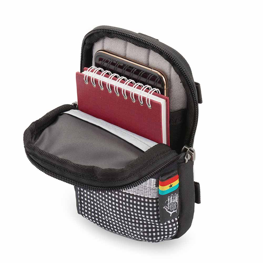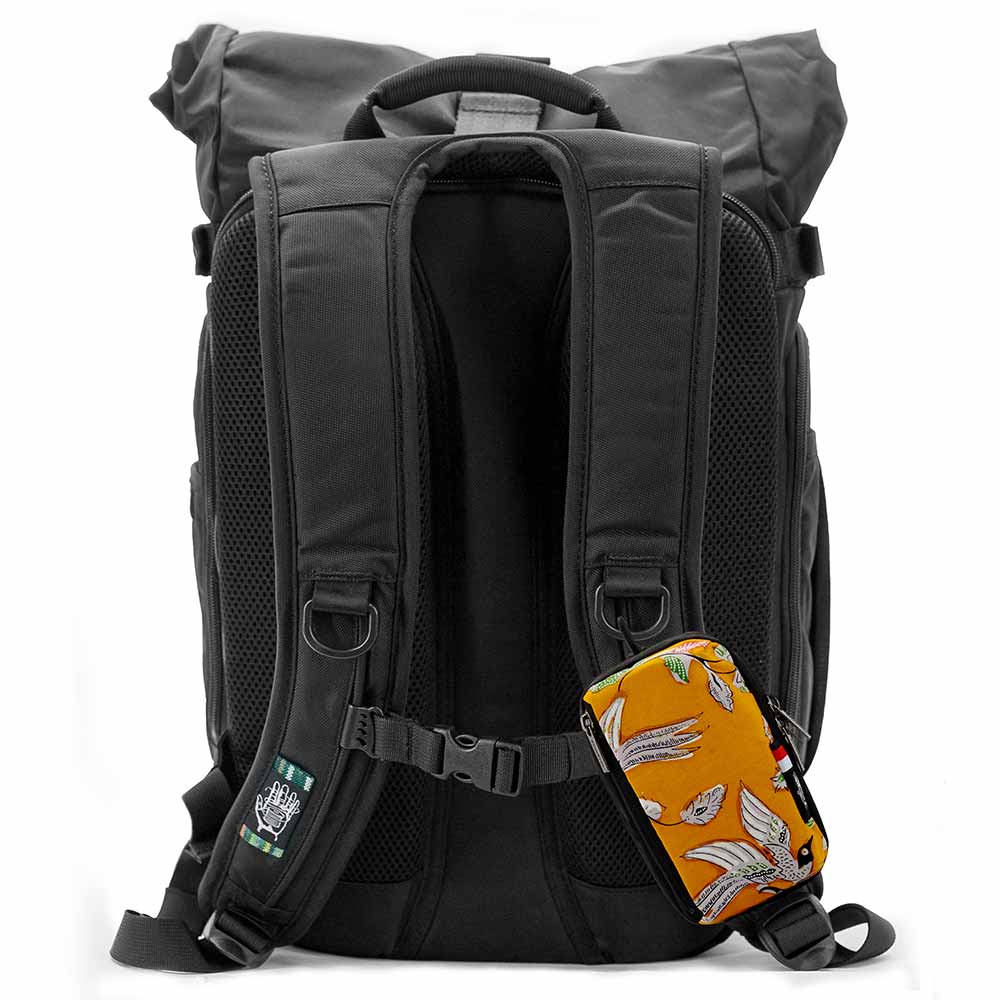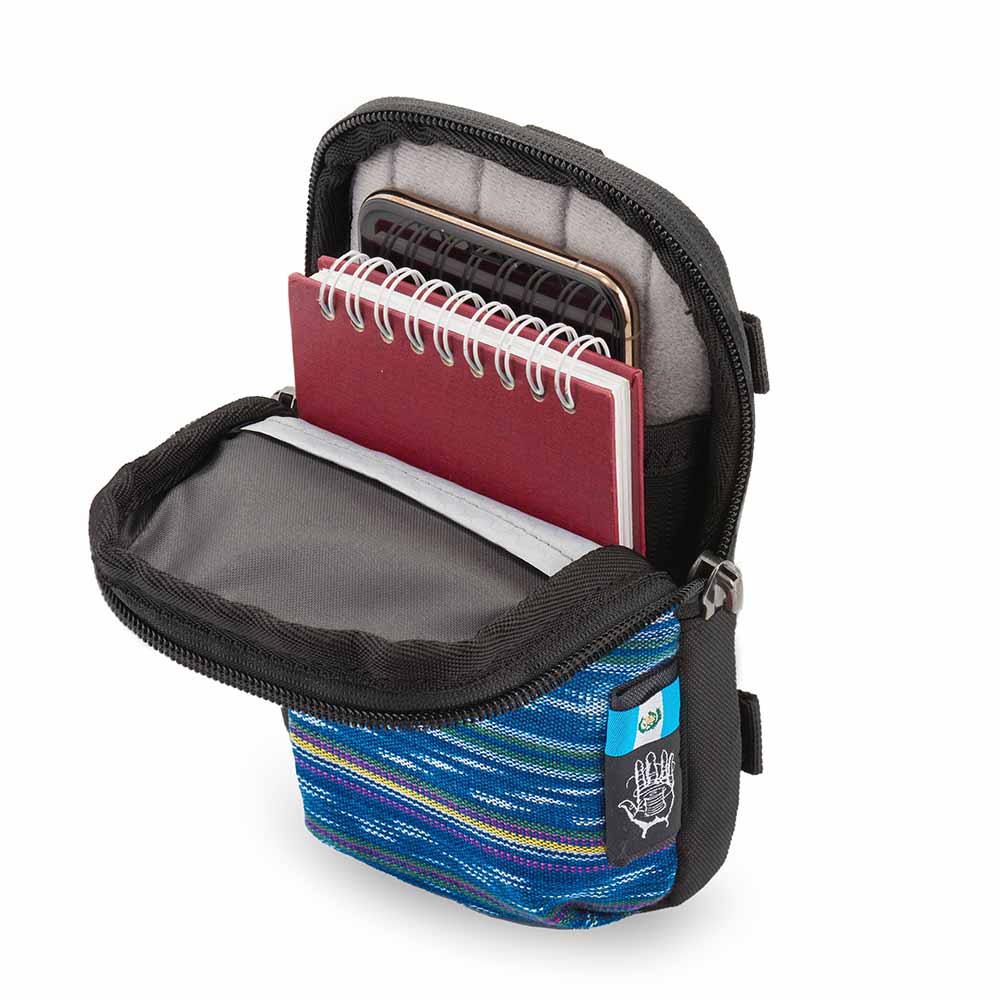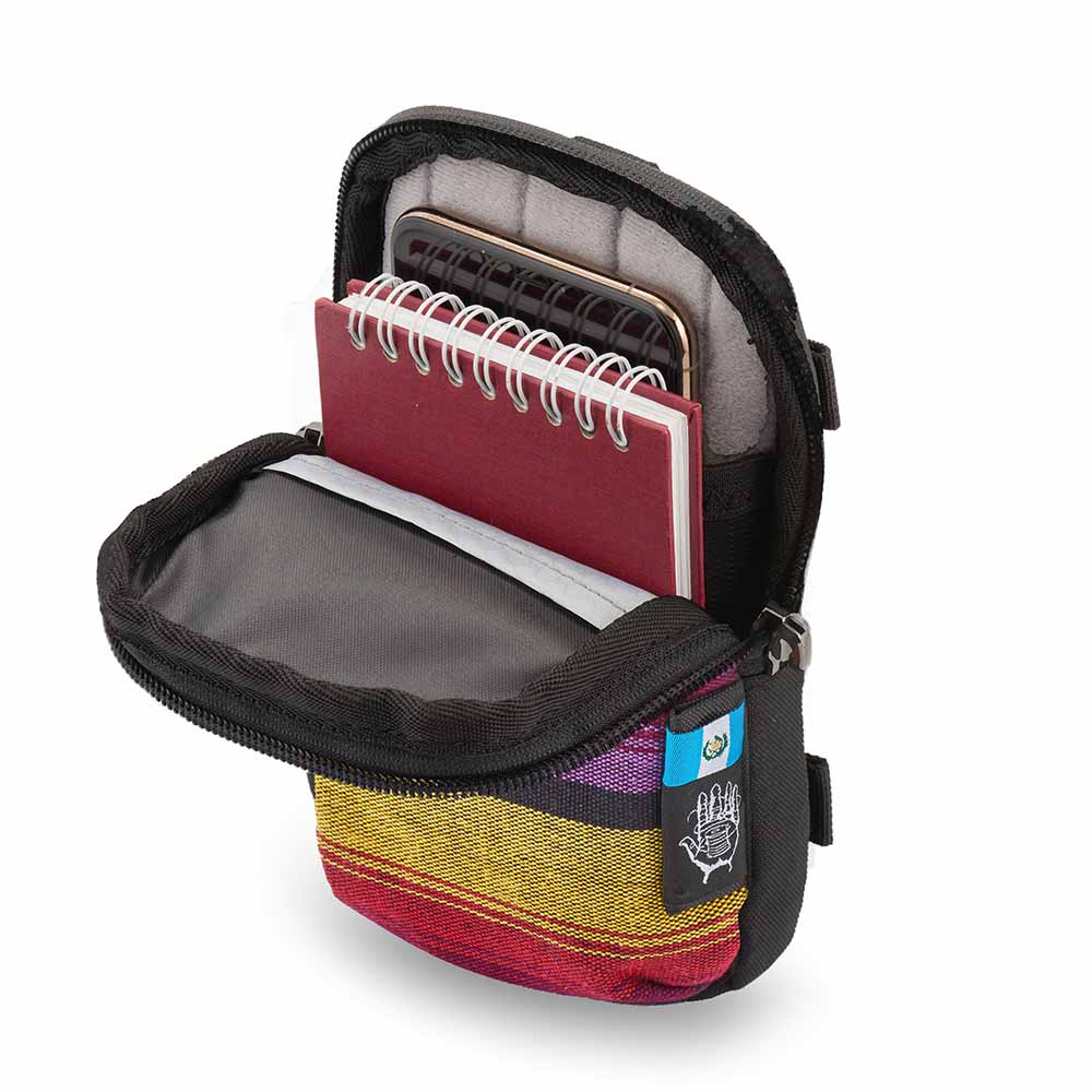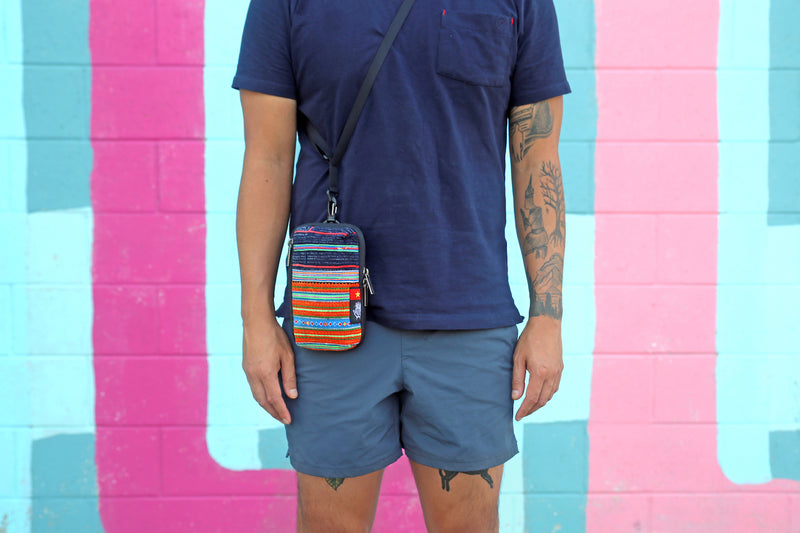 エスノテック ピンダーフォンポーチは、バックパッカーや通勤時の使用にとっても理想的なデザインです。多くのサイズのスマートフォンに対応しています。背面のストラップ&クリップシステムは、ETHNOTEKのバックパックのショルダーストラップに取り付ける事ができる様に設計されており、服のポケットを空にでき、電話を簡単かつ迅速にアクセスできます。ポーチには、サングラス、リップ、パスポート、鍵、その他の小さなアクセサリーを収めるためのファスナーポケットもあります。