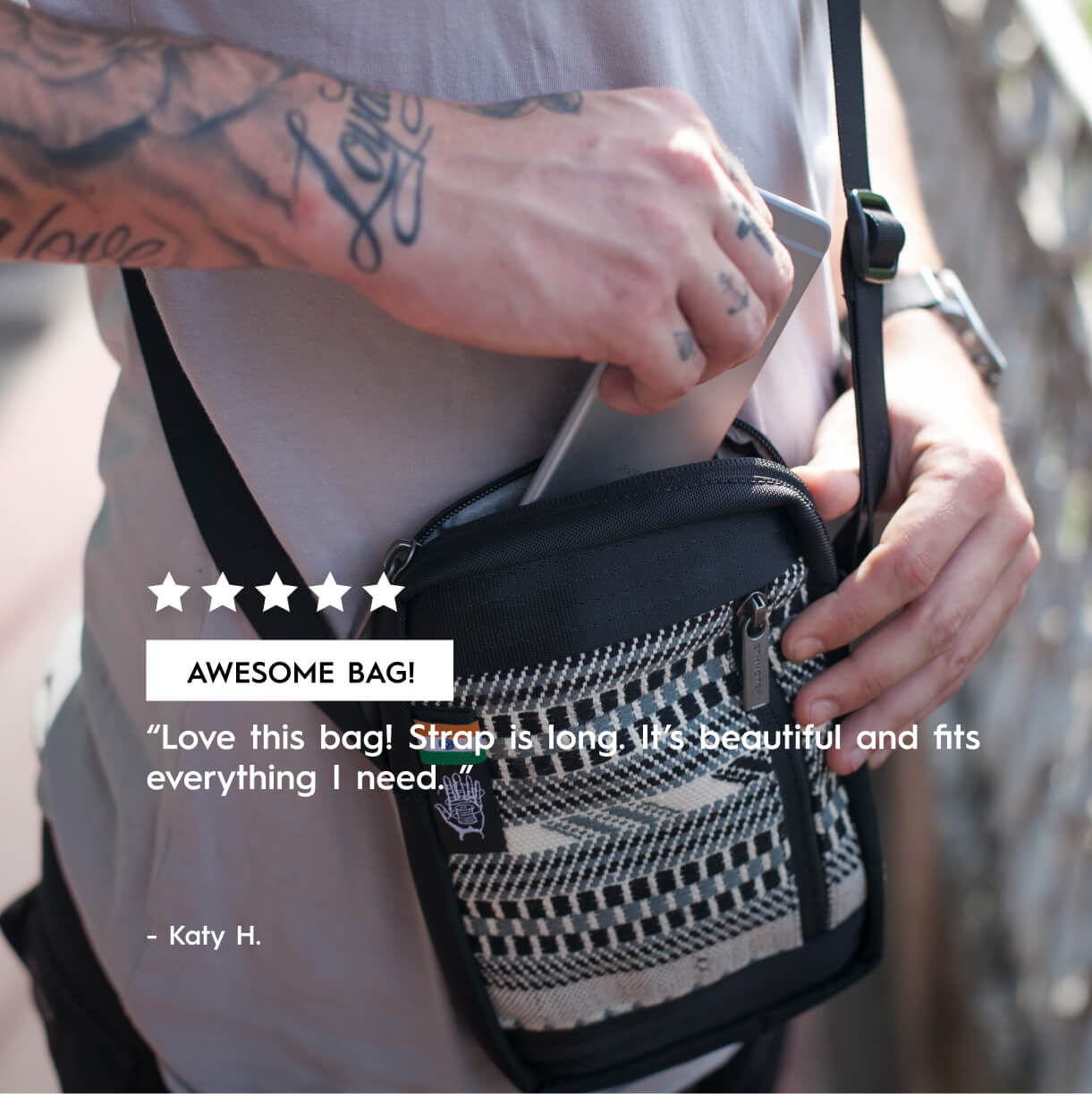 エスノテック チャーロポケットはパスポート、財布、携帯電話、ペン、旅行書類など、移動中の身の回りのアイテムを収納するのに適している、日常使いにぴったりなコンパクトショルダーバッグです。
